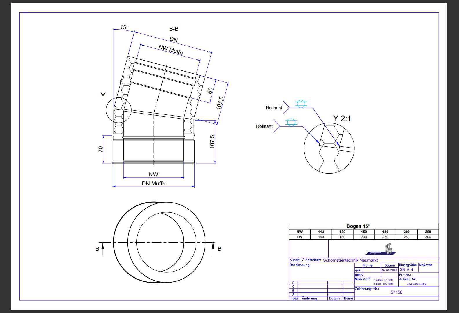 Technische Zeichnung Bogen 15°